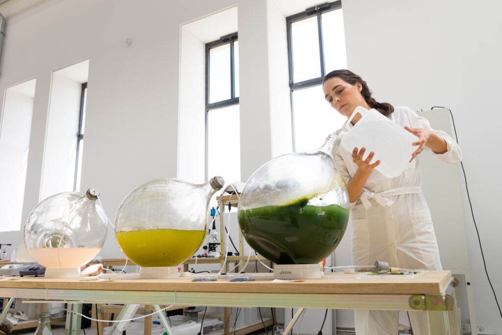 In 2017 zetten Eric Klarenbeek en Maartje Dros van Studio Klarenbeek & Dros in samenwerking met Atelier Luma Algae Lab op, een biolaboratorium dat het potentieel onderzoekt van gekweekte micro- en macro-algen en hun toepasbaarheid. Algen absorberen actief CO2, zodanig hebben bioplastics op basis van algen een negatieve voetafdruk. Algae Lab zette verschillende algen om in bindmiddelen, vezels, of kleurstoffen voor biopolymeren die gebruikt kunnen worden voor 3D-printen, waardoor ter plekke kan worden geproduceerd en de voetafdruk nog meer wordt ingeperkt. Dit project, de winnaar van de New Material Award in 2018, toonde aan dat biopolymeren op basis van algen minstens zo goed toepasbaar kunnen zijn als traditionele kunststoffen, en zelfs geschikt zijn voor spuitgieten en 3D-printen. Algae Lab heeft sindsdien haar onderzoek naar de toepassing van algen vervolgd en in samenwerking met andere ontwerpstudio’s producten en materialen ontwikkeld. Klarenbeek & Dros zijn doorgegaan met Seaweed Cycle, een project dat ze hebben opgezet om biopolymeren te maken uit lokaal geteeld zeewier in Nederland.