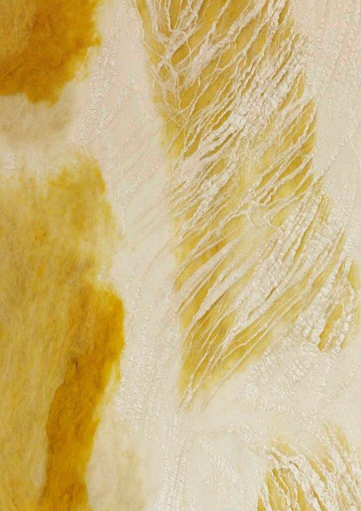 Her 2010 New Material Award-winning project Waste Materials consists of a wall-hanging of merino wool, raw silk and leftover wool from her own sheep herd, coloured with yellow dye from the dyer’s weed plant, one of the plants in her dye botanical garden. Both activist statement and art piece, ‘Waste Materials’ is a circular design that showcases Dutch traditions and contemporary values.