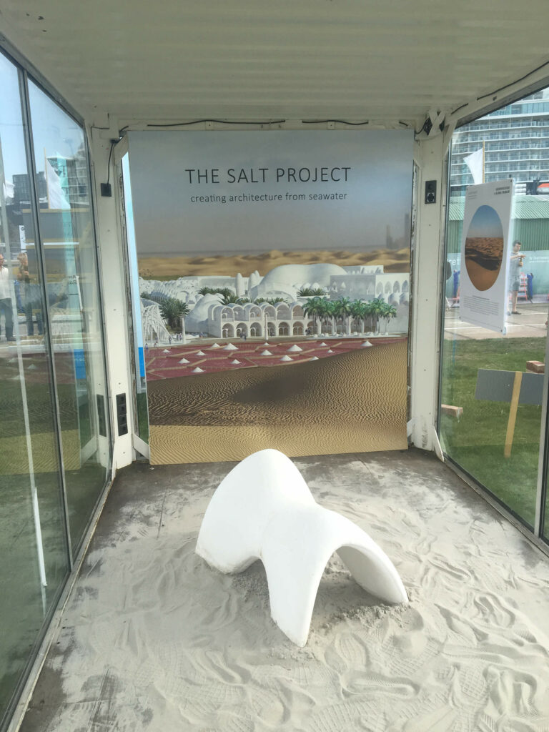 In 2015 raakte Geboers geïntrigeerd door het probleem van verwoestijning van landbouwgrond. Soms wordt gedistilleerd zeewater gebruikt om verwoestijnde grond te irrigeren, maar dit proces laat grote hoeveelheden onbruikbaar zout achter. Geboers kwam erachter dat door het verhitten en drogen van een mengsel van bijna 90% zeezout, een kleine hoeveelheid zetmeel en water, een wit, hard, doorschijnend materiaal ontstaat. De eigenschappen van het materiaal — sterk onder drukkende krachten maar zwak onder spankracht — vragen logischerwijs om een boog- of koepelvorm. De Salt Pup is een prototype van een stoel die Geboers met dit composietmateriaal ontwierp; de organische rondingen maken optimaal gebruik van de karakteristieken van het materiaal. Het uiteindelijke doel van Geboers was om het composietmateriaal toepasbaar te maken voor architectuur.
